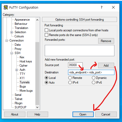 일반적으로 SSH 접속하는 것과 같은 절차이지만 Tunnel을 위한 한 가지 설정이 더 필요하다.