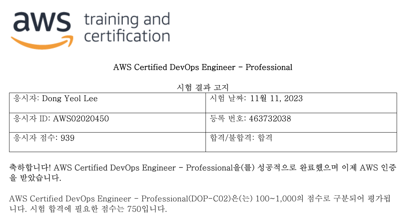 이번 포스팅에서는 AWS 자격증 중 하나인 AWS Certified DevOps Engineer - Professional(DOP)을 취득해서 간단하게 후기와 팁을 공유해드리려 합니다.
