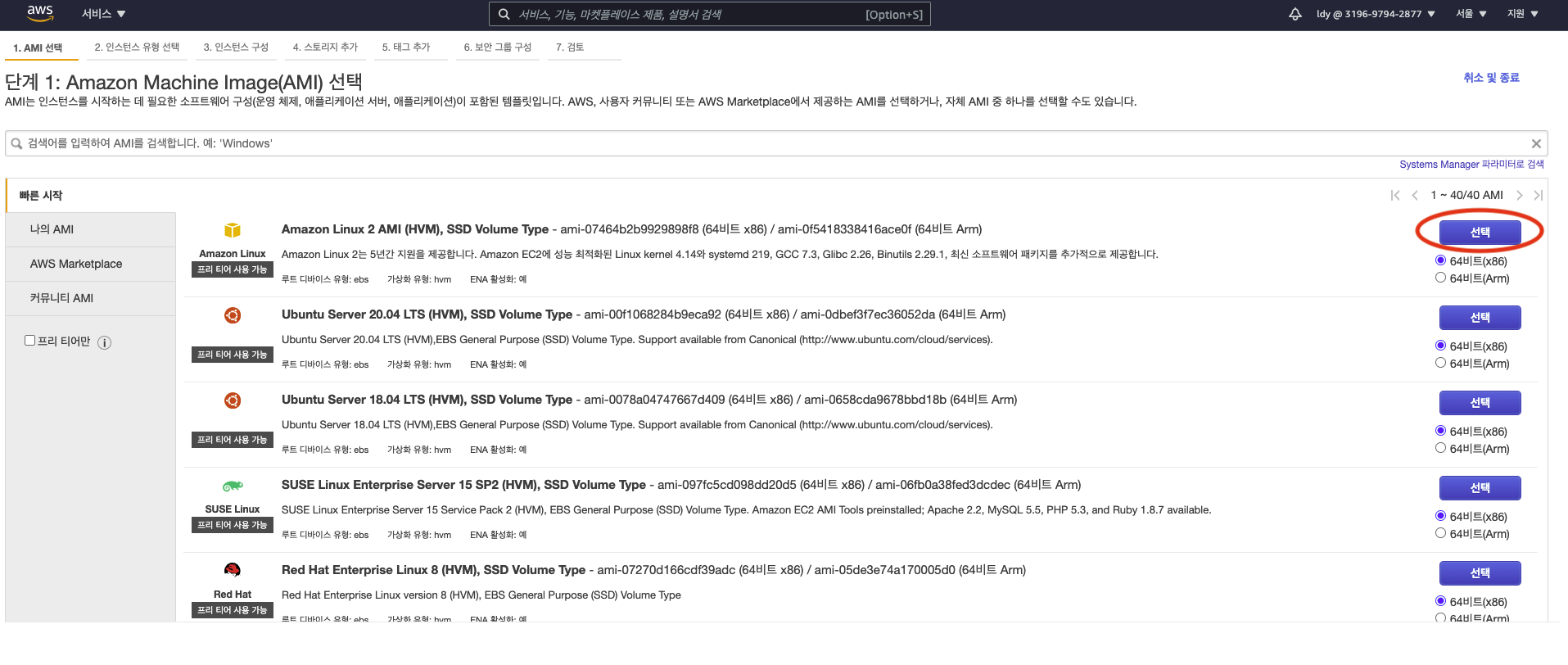 위의 방법으로 똑같이 하나 더 만들도록하자. 하지만 다르게 해주어야할 부분이 한 군데 있는데 바로 보안그룹이다.