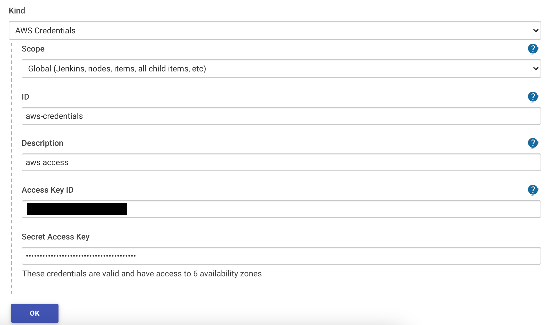 ECR경로는 ECR에 Repository를 만들어서 복사해 붙여넣으면 된다. 그리고 jenkins로 가서 aws에 대한 access key와 secret access key를 등록하자.