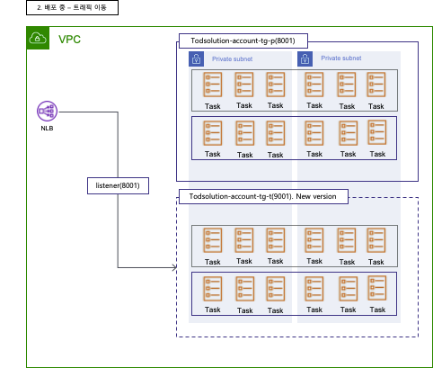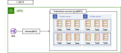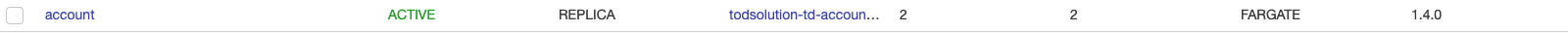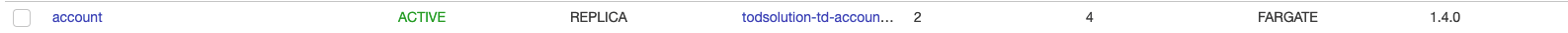 작업이 2개로 줄어들었고 로드밸런서(8001:9001)에 연결된 대상 그룹이 todsolution-tg-account-t로 변경된 것을 볼 수 있다.