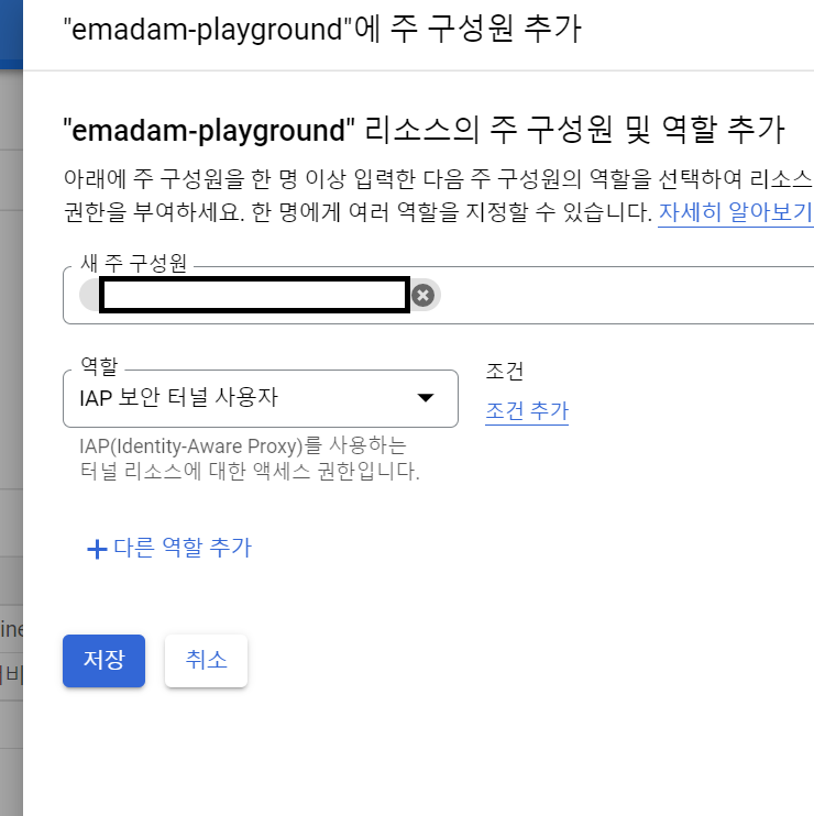 - roles/iap.tunnelResourceAccessor // IAP 보안터널사용자
